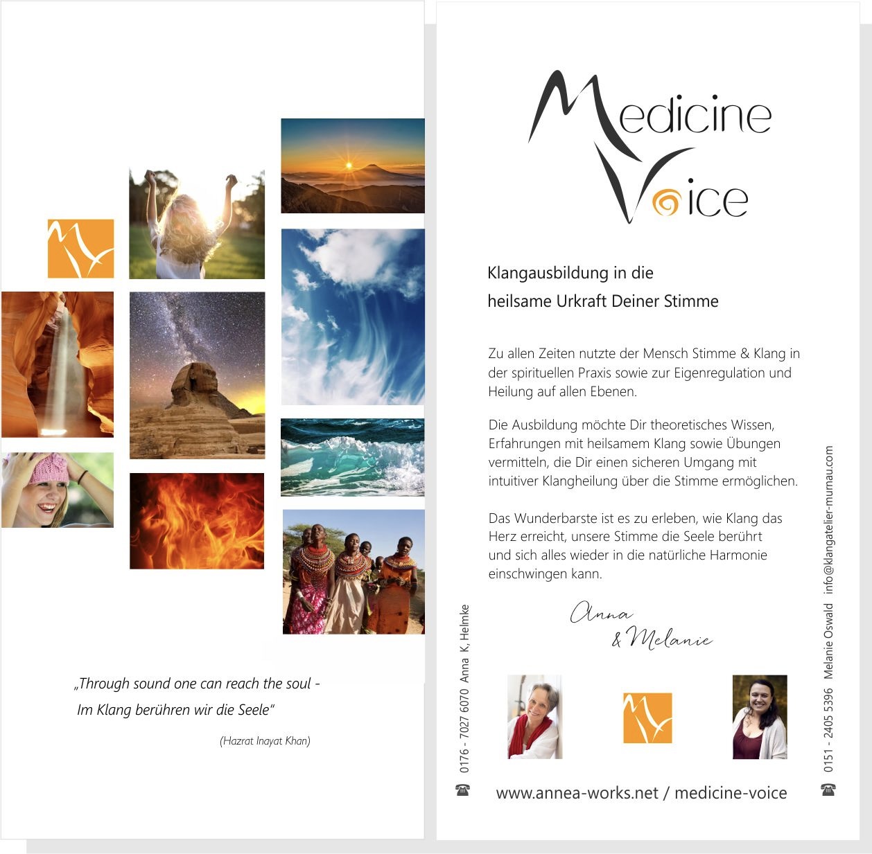 hier entsteht eine wundervolle, neue Ausbildung zur heilsamen Anwendung der eigenen Stimme. Profundes theoretisches Wissen verbunden mit intuitiver, achtsamer und präsenter Anwendung der Urkraft Deiner Stimme bestimmen den Unterrichtsplan. Wir, Melanie & Anna freuen uns sehr darauf mit Euch in dieses Abenteuer zu starten 🙂